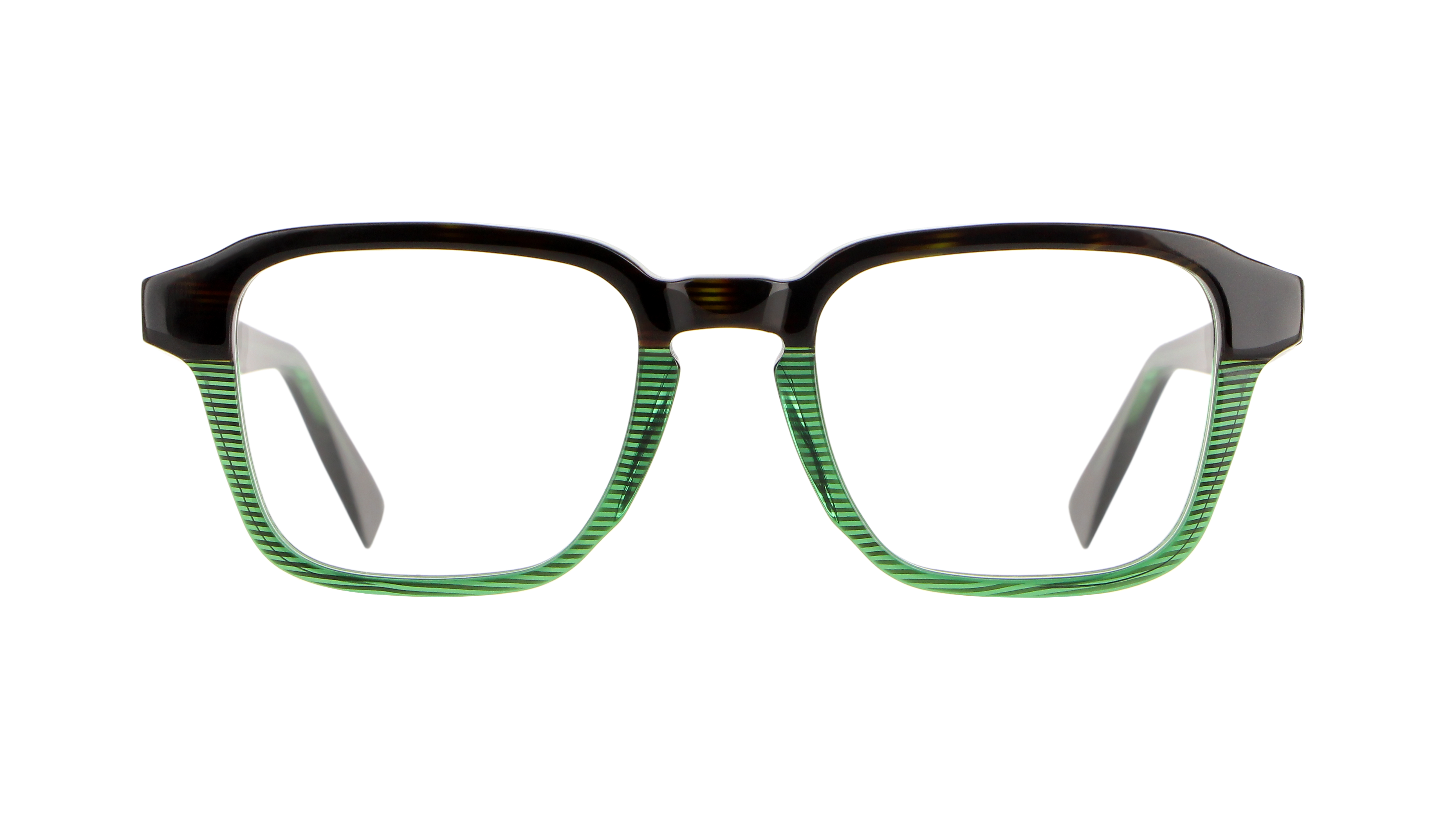 DESCRIZIONE COLORE MONTATURA: Havana, verde trasparente con righe nere